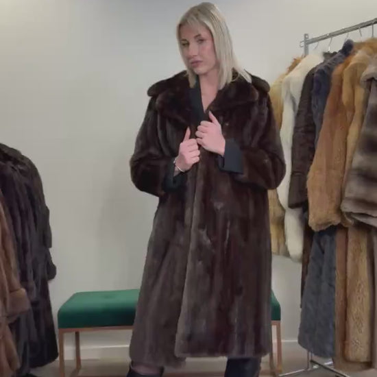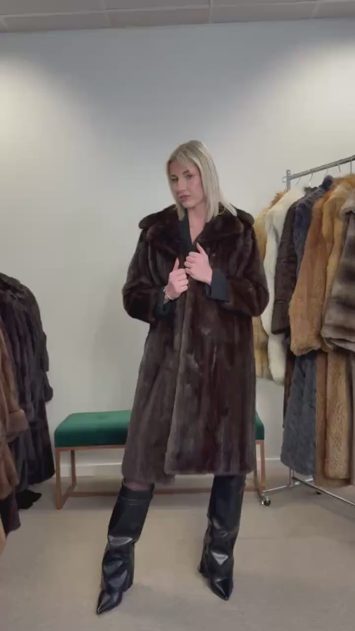This fur coat is made of real mink fur. This vintage coat is in brown - natural brown color, excellent condition, high fur quality, vintage and a rare find.