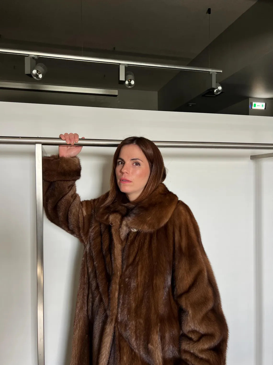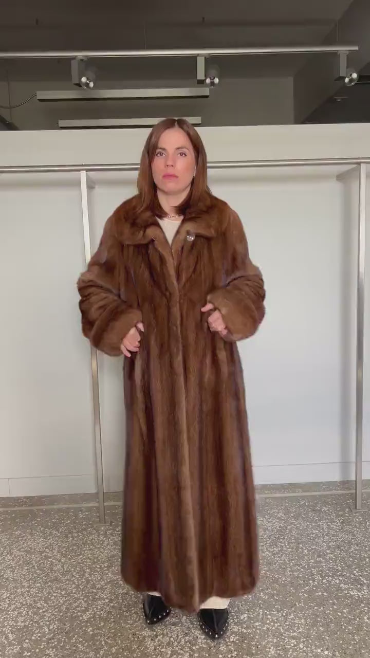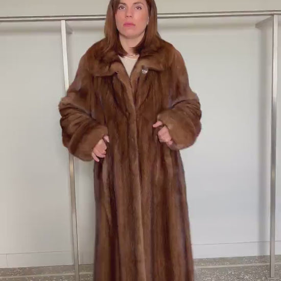 Demi Buff Mink Fur Coat:Brown Long Collared Stroller handmade artisanal let out technique. Handmade in Greece.